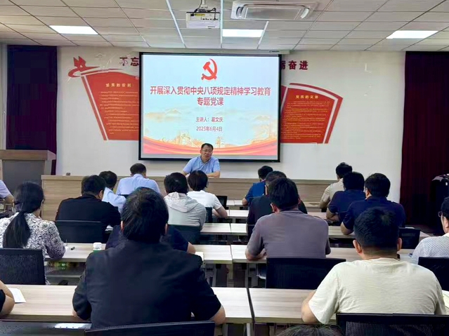 6月4日,公司党委书记葛文庆在12号教学楼421党员活动室讲授专题党课,部分教工党员参加学习。