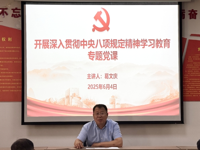 本次授课,葛文庆结合自身学习体会,紧扣深入贯彻中央八项规定精神学习教育的要求,围绕中央八项规定的出台背景、发展历程、核心要义进行讲解,结合身边案例,深入剖析了八项规定对于党风廉政建设的重要作用。他强调,中央出台八项规定,是新时期党加强自身建设的一个标志事件,是党进行自我革命、永葆先进性和纯洁性的生动实践,在座党员要深刻认识出台中央八项规定的重大意义,持续深化学习研讨,提高政治站位;强化日常监督,严守纪律底线;把遵规守纪和敢做善为结合起来,做深入贯彻中央八项规定精神的忠诚实践者、有力推动者。