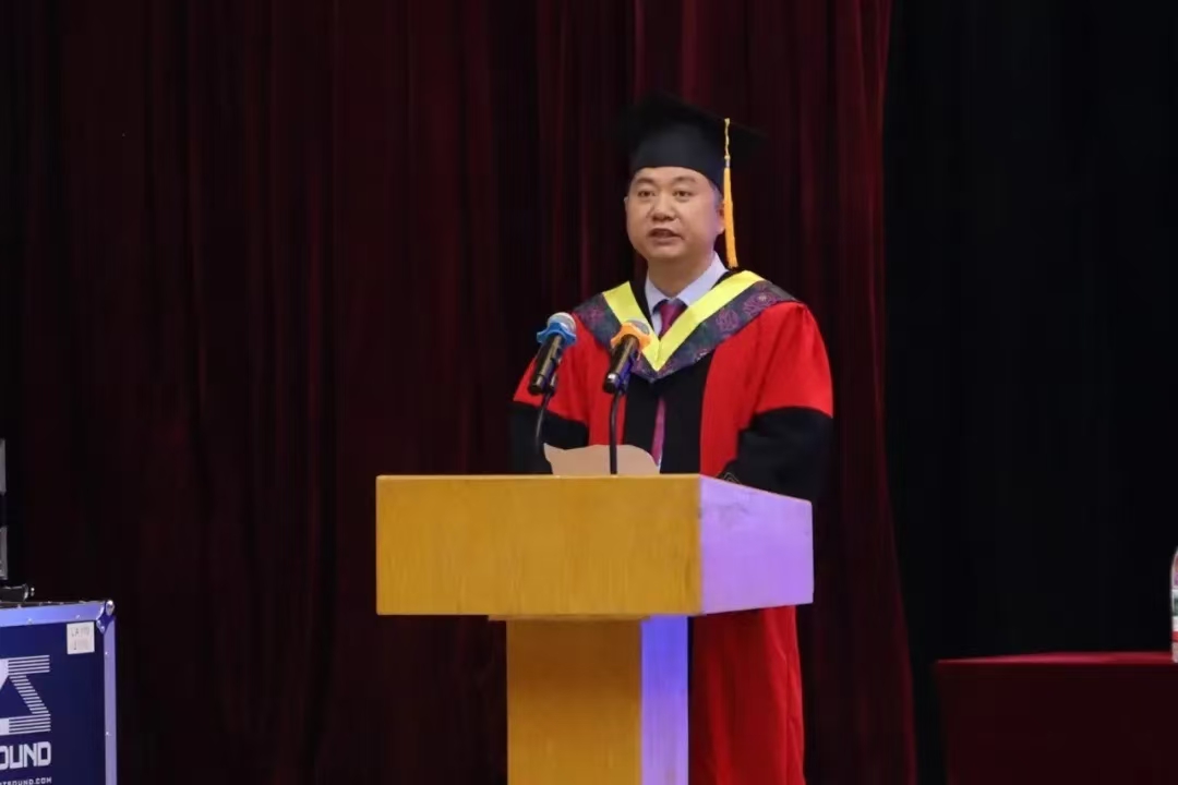 执行经理赵国勇宣读《关于授予2025届本科毕业生学士学位的决议》,向圆满完成学业、顺利毕业的同学们致以热烈祝贺,同时祝愿大家在未来的人生道路上一路顺遂,前程似锦。