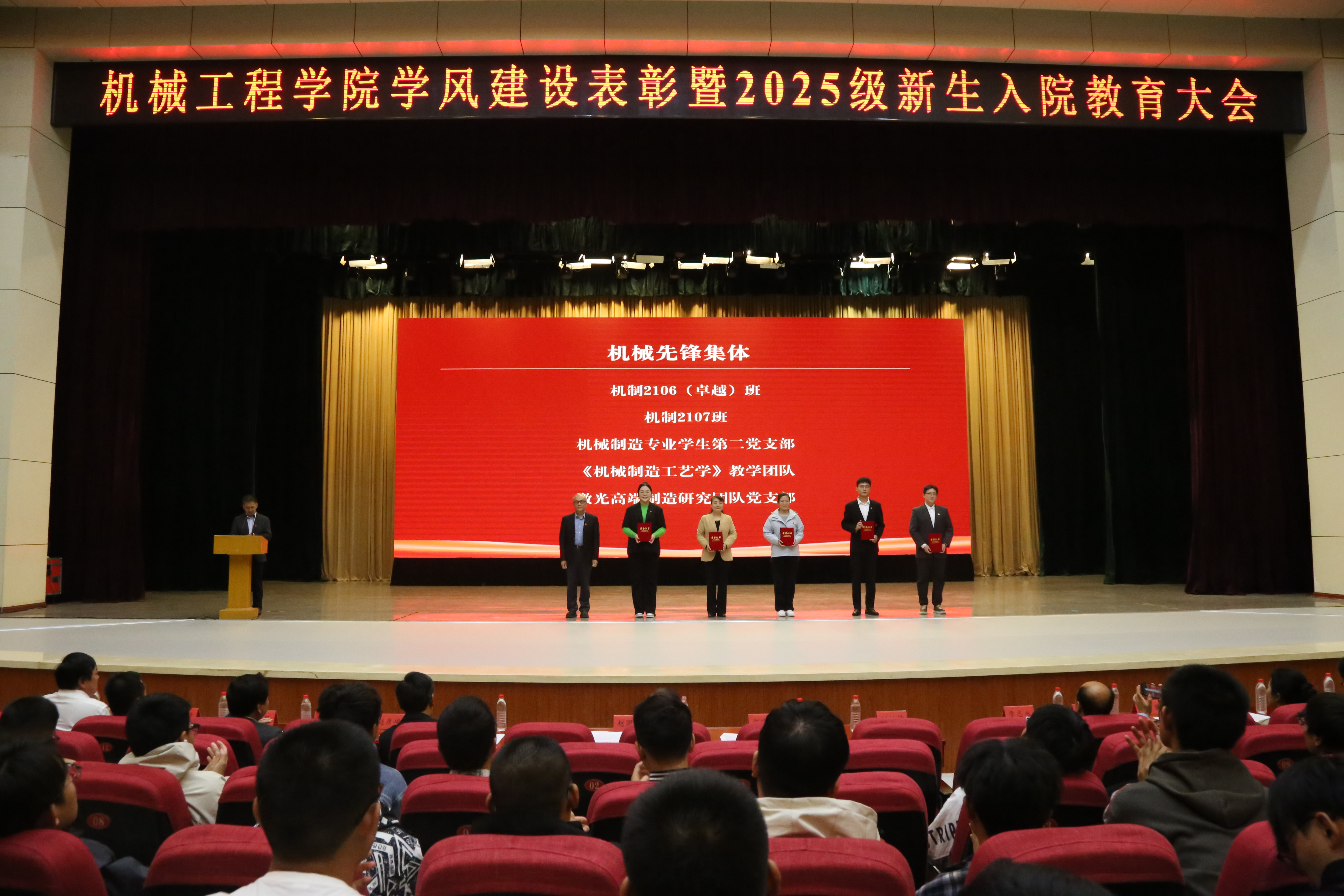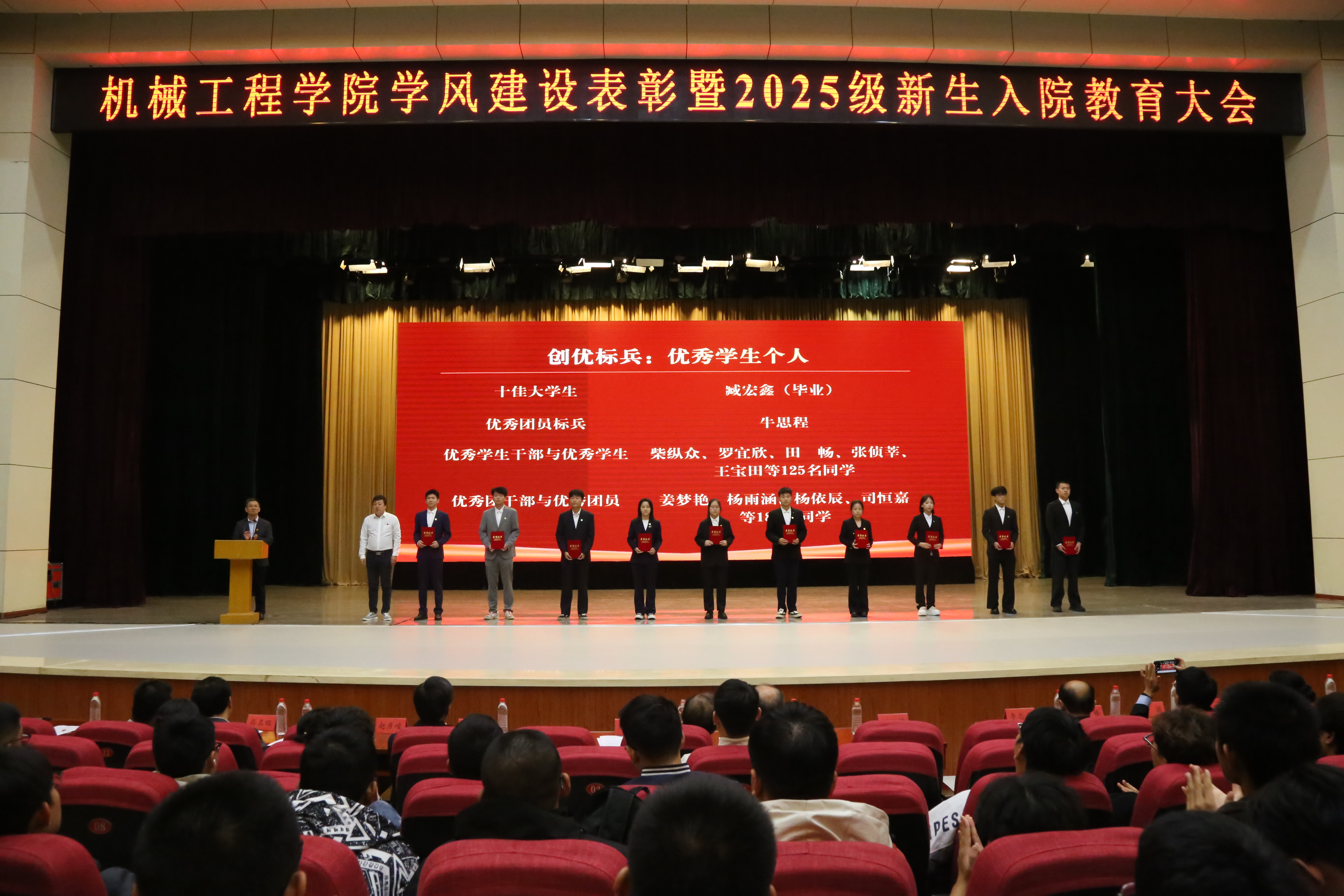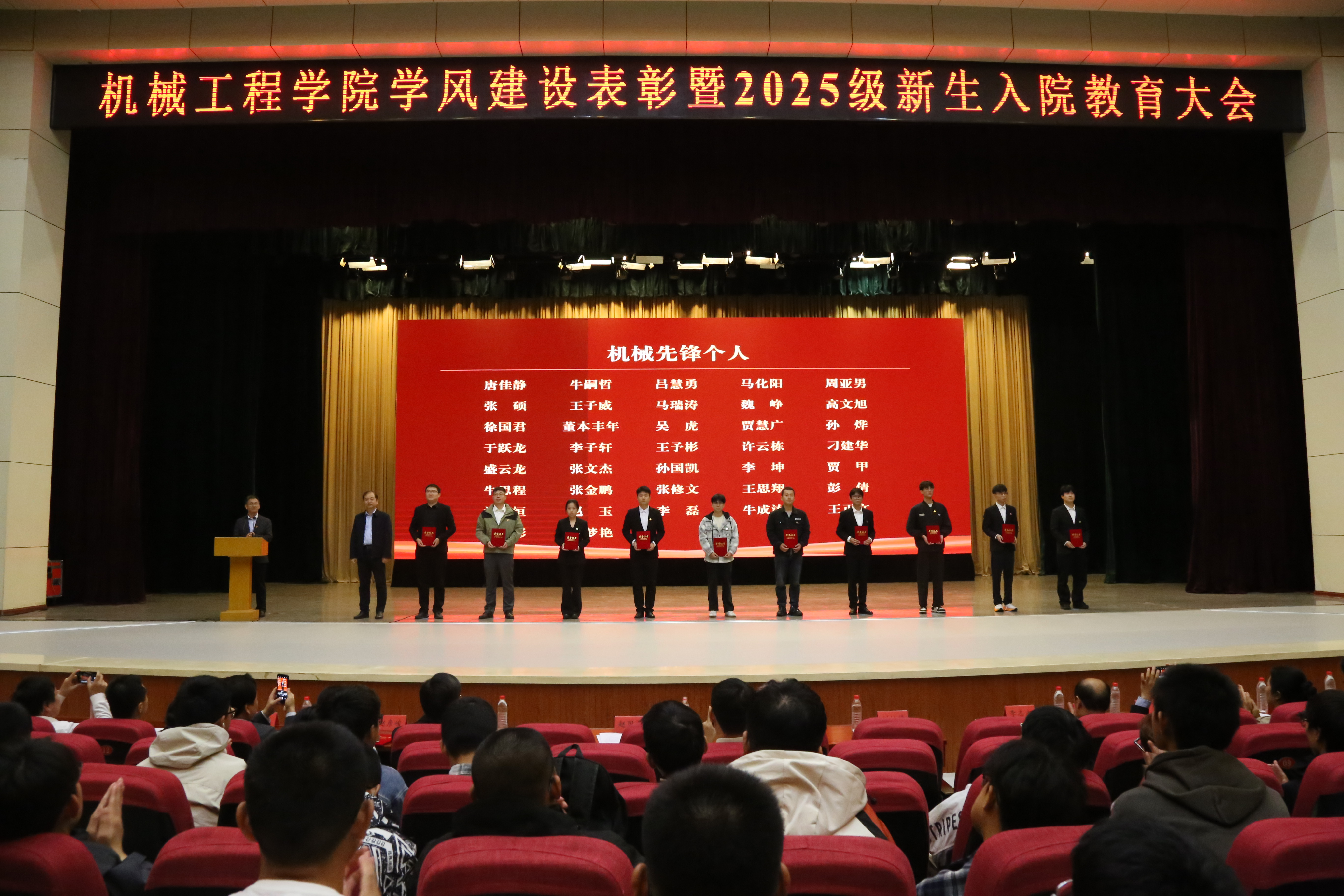 表彰结束后,经理郑宏宇教授以《我的求学及科研经历》为题为2025级新生作了报告。他表达了对2025级全体新生的殷切期许,分享了自身求学经历,向同学们阐释了坚持理想、主动探索、开拓思路、勤于实践大学学习模式,叮嘱同学们要做好生涯规划和时间管理,锻炼好人际交往能力和沟通表达能力,希望同学们能够坚持做到知行合一,脚踏实地、增长本领,成长为具有工匠精神、机械气质的新时代青年。