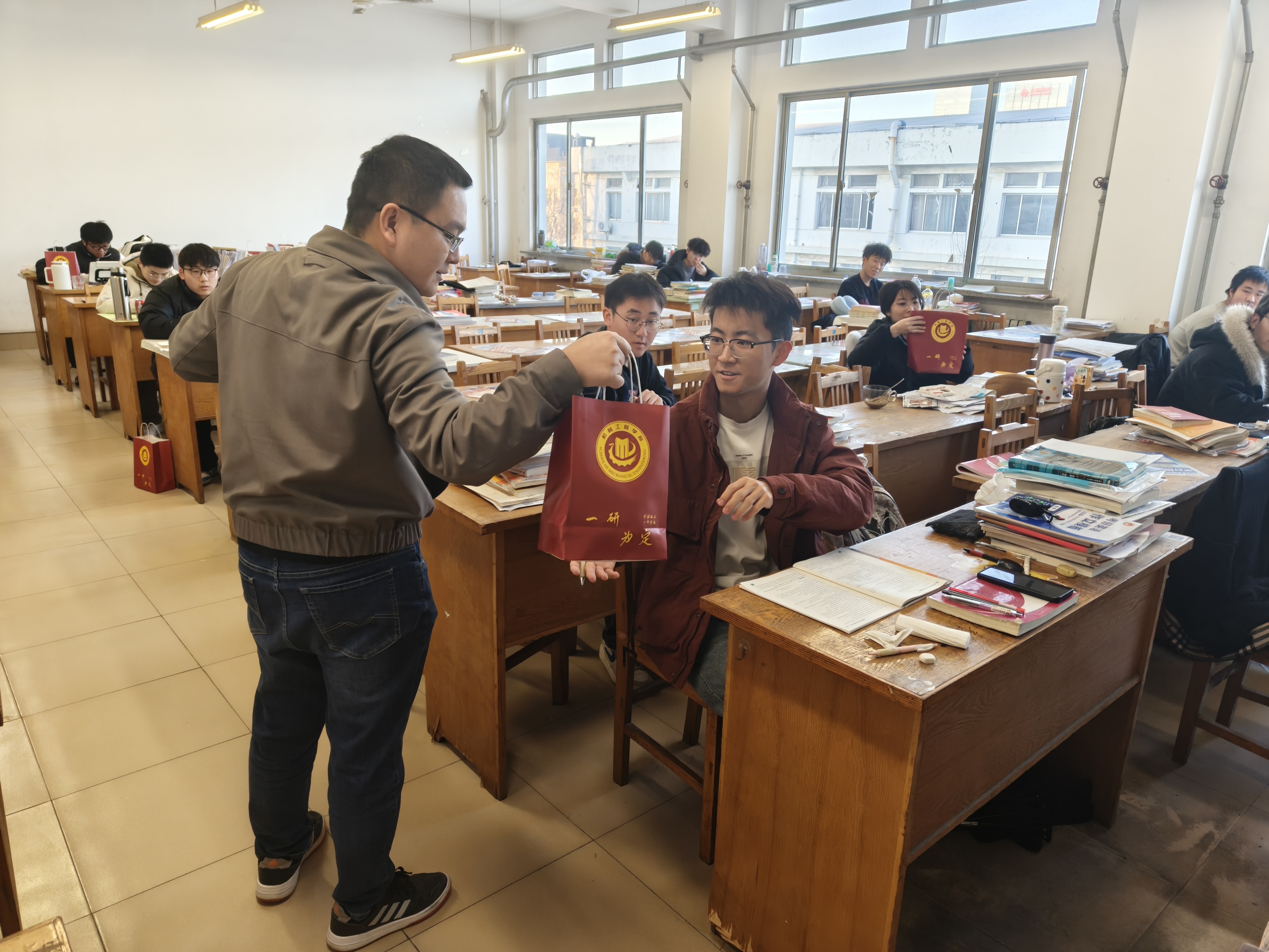 12月4日,公司开展“考研送温暖”活动,公司领导班子和辅导员深入考研自习室,为即将奔赴考场的学子献上暖心的礼物与祝福,助力学子们勇往直前、奋力拼搏。