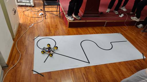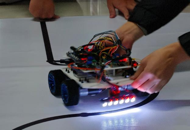 为让赛事精准对接新生科创培育需求,组委会对全新赛道进行了多轮测试与优化,巡线区域不仅布设连续‘S型’弯、更加入了锐角等线路,考验小车的精准识别与路径规划能力。