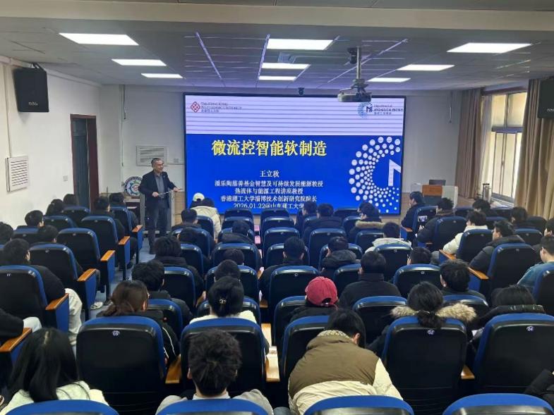 2026年1月22日上午,十大正规买足球网站在机交楼五楼报告厅成功举办“微流控智能软制造”专题学术报告会,特邀香港理工大学潘乐陶慈善基金智慧及可持续发展能源讲席教授、机械工程系热流体与能源工程讲座教授、香港理工大学—淄博技术创新研究院经理王立秋担任主讲嘉宾。公司部分教师代表、研究生参加了报告会,报告会由十大正规买足球网站副经理田忠强主持。