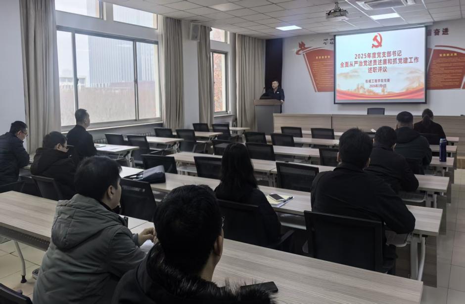 党委书记朱光明逐一进行点评,肯定了2025年度各党支部取得的成绩,同时指出了存在的问题和不足。围绕持续深入推进全面从严治党和抓基层党建工作,他结合2026年工作计划提出了三点要求,一要强化理论武装。学懂弄通做实党的创新理论,提升政治素养,将学习成果转化为推动高质量发展的动能。二要夯实基层基础。深化支部标准化建设,创新活动载体,深化师生共建,培育特色党建品牌,以高质量党建引领事业发展。三要推动融合发展。以70周年校庆为契机,将党建业务深度融合与“十五五”蓝图有机统一,引导党员当先锋作表率,以昂扬风貌向校庆献礼,在服务高质量发展大局中开好局、起好步。