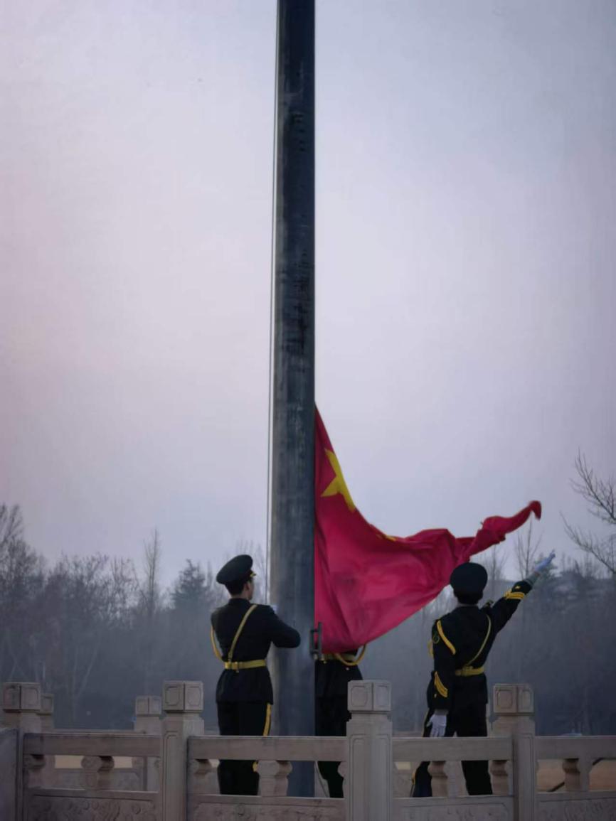 晨光熹微中,全体师生按班列队、整齐肃立。6时30分,升旗仪式正式开始,国旗护卫队步伐铿锵,护送五星红旗至旗杆下。伴随着雄壮的《义勇军进行曲》,五星红旗冉冉升起,全体师生行注目礼、齐唱国歌,赤诚的爱国之情在晨光中激荡。