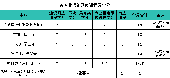 各专业通识选修课程学分汇总如下: